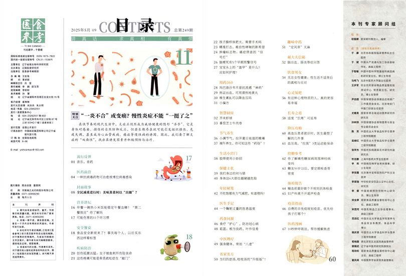 《医食参考》杂志的特色在于准确性和可信度。杂志的内容基于权威的科学研究和专业的医学知识,通过深入的调研和专家学者的撰稿,确保杂志所传递的信息是准确、全面、可靠的。此外,杂志还会定期介绍国内外最新的营养科学研究成果,为读者提供前沿的营养知识。
